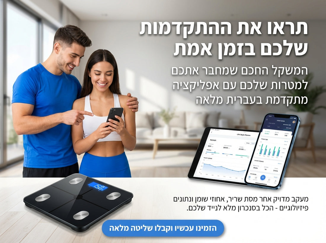 משקל דיגיטלי חכם – מעקב חכם אחרי הגוף, שומן ומדדים עם אפליקציה
